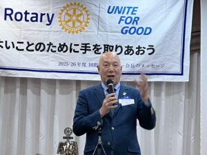本年度の当クラブが所属する第2780地区のポリシーは“Have Fun Rotary ロータリーを楽しもう”です。会員がロータリーでの縁を大切に、世のため人のためという志をもって、まずは“一歩踏み出し行動しよう”を会長のスローガンとして掲げました。当クラブの平均年齢は若いことが特徴とされています。仕事・家庭や子育ての現役世代が多い私達ですが、だからこそ出来ることを信頼できる仲間とともに一緒に考え行動していきたいと考えています。