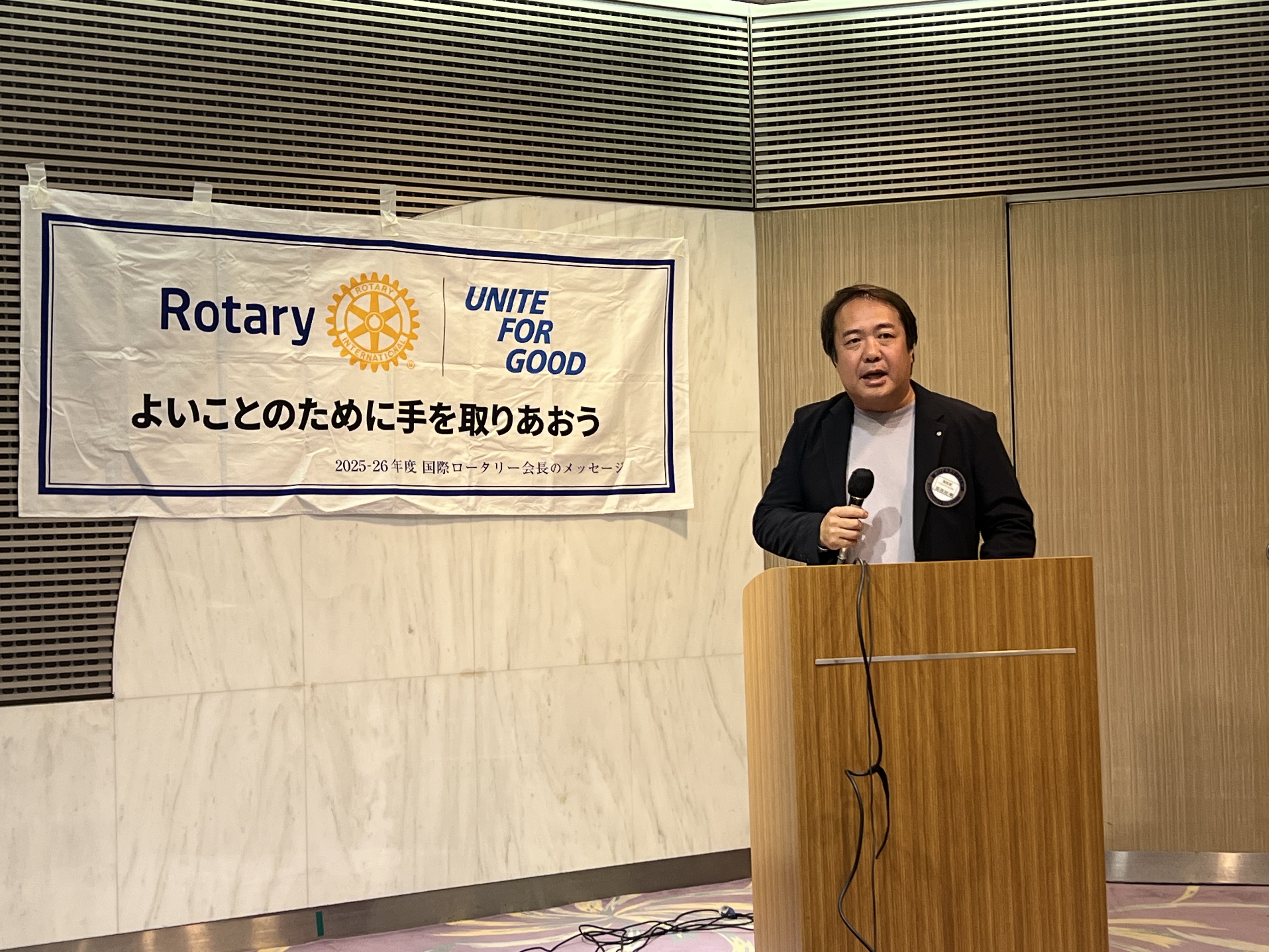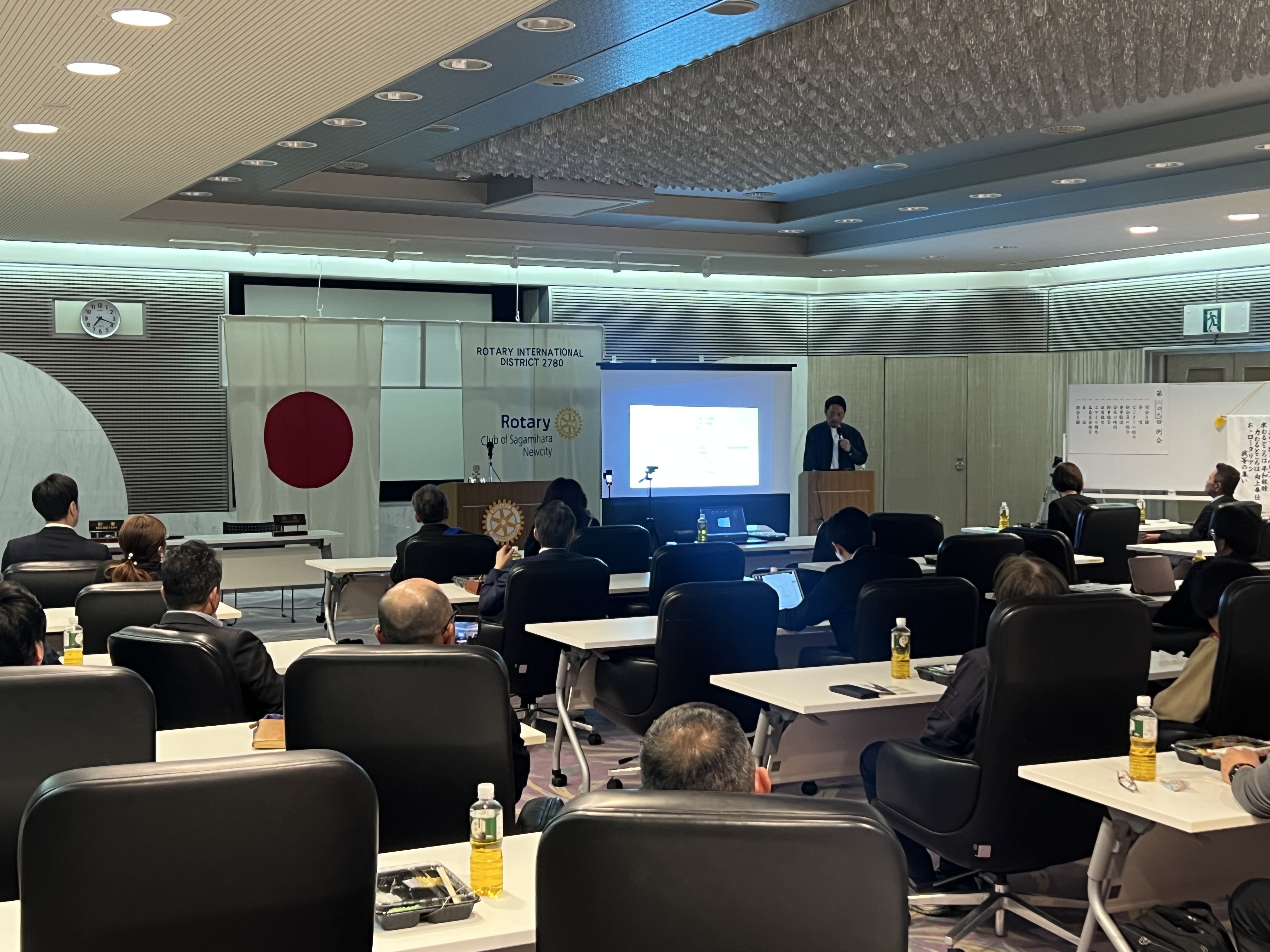 会員維持増強委員会 長谷川明卓話 イニシュエーションスピーチ4/16(木) 産業会館19:30より佐伯守章(今年度入会者)生い立ちから現在までのストーリーが話され生業である塗装業についての日々や苦悩また楽しさが語られ、趣味についてもバイクやダイビングの話がなされ会場の皆も興味を持って拝聴していただいた。江田 克紀(前年度入会)生い立ちから現在までのストーリーが話され現在の生業に至るまでの数多くの仕事体験、壮絶な人生が語られ、現在の特殊な金属工事業の内容が詳しく話された。また趣味のゴルフを楽しみながらロータリー活動を楽しみたいとのことであった。
